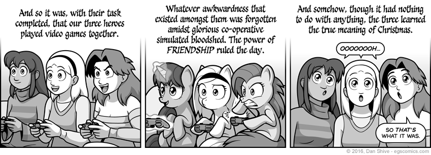 I really wasn't sure if I wanted to invoke ponies in panel two, but then I started sketching it, and it sort of became a thing I had to finish.