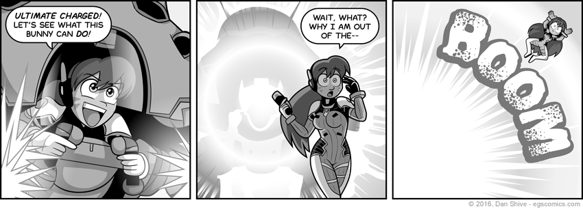 Because I'm a huge nerd, I totally made a quick video of D.Va shooting some robots and blowing up her mech and flung it on to YouTube so it could provide context for this comic. Be warned that there is cartoonish violence towards adorable squeaky robots.