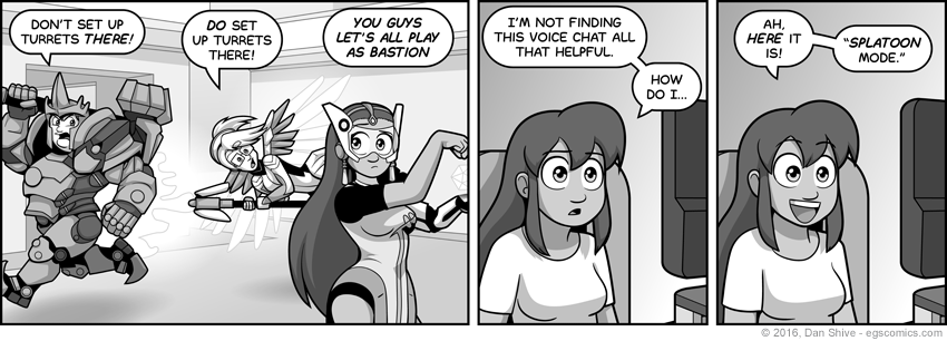 Incidentally, I'm not being mean to Rich and Larry in this comic. Both are just giving their strategic opinions in a team based game, plus Rich is playing as Reinhardt (protects people) and Larry as Mercy (heals people). They are credit to team here.