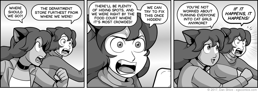 In short, Catalina's actually pretty on the ball, here. They could easily be cornered in any of the smaller shops, whereas they'll have tons of options and escape routes where she's suggesting.