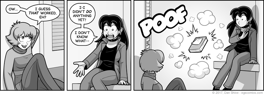 As for what the heck did happen in the previous comic and why the enchantments all simultaneously ended like that, the reasoning behind it was established earlier in the storyline, and will be confirmed before the storyline is over. I say this in case anyone wants to guess and possibly feel like they deserve cookies later.