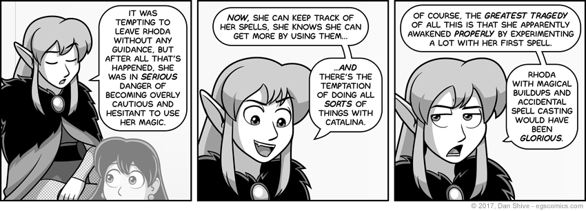 It's probably for the best that Rhoda wasn't making things bigger or smaller when she sneezed and waking up in various transformed states or whatever, but of course Pandora is going to disagree.