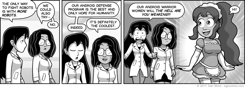As far as I can tell, fighting androids in dresses not at all suited for combat is basically a genre unto itself (with more than one example having a maid theme), and Nier: Automata got me thinking about in-universe explanations for why they'd dress that way.