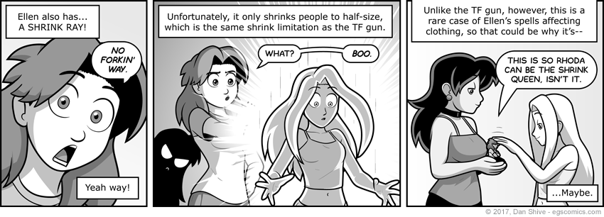 And, of course, Ellen knew that her new shrink spell shrunk clothing, too. Isn't that right Ellen?