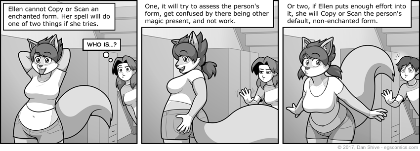 Thing is, this is a pretty darn significant thing to allow to be canon, because Ellen now has a way to covertly find out someone's default form. That is not a small thing. Granted, the spells that allow her to do that are relatively short range, but it's still a signifcant thing to establish.