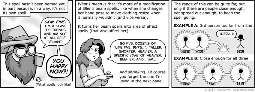 BUT this was, again, more me settling on what should be canon, how to make it clear, whether I want the next comic to keep going on about this spell or have a proper conclusion... Annnnnd we wound up with... Whatever the first panel is, a single image of Ellen, and stick figures.