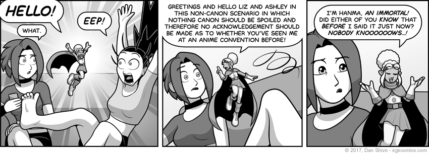 As far as I’m concerned, this as good as confirms Hanma as canon. This moment is non-canon, but the entire gag depends on it being blatantly obvious that Ashley and/or Liz actually have met Hanma in a canon moment before.