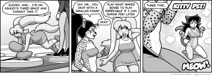 Of course, then we reached this point in the comic, and I was like "oh. Right. I just had them talk about how Rhoda has a thing about people being bigger than her, and Ashley uses a card that makes Rhoda a lot smaller."