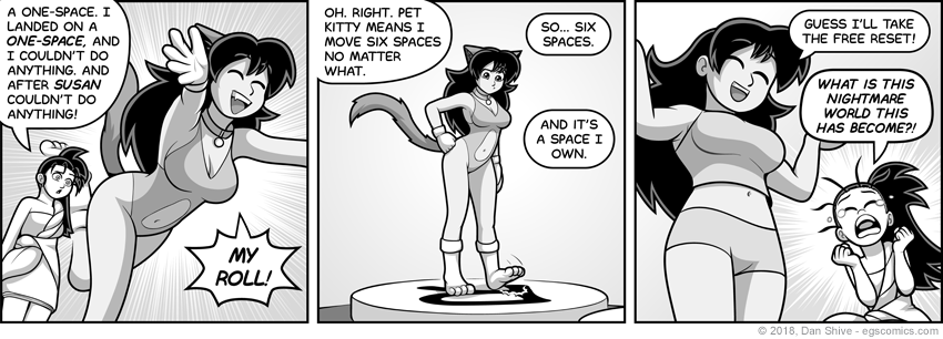 This actually happened in playtesting. Three turns in a row where basically nothing happened except Rhoda opted to reset her transformations.