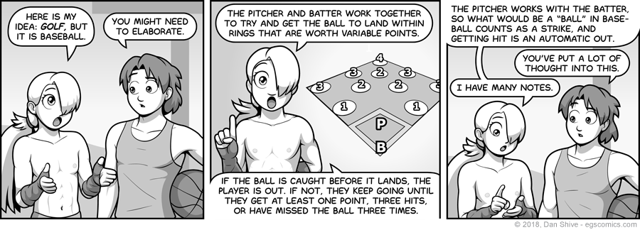 As for how this came to be, I was around while a relative of mine was switching back and forth between watching baseball and golf. This was the resulting thought process: