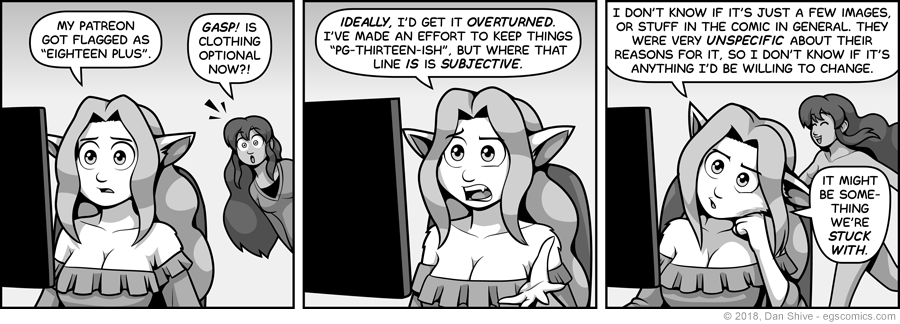 I don't think I did any one specific thing, as no specific thing on my Patreon was called out. That suggests a far more general concern regarding content, likely to do with some of the transformation sequences and more suggestive imagery, and them pre-emptively covering their bases.