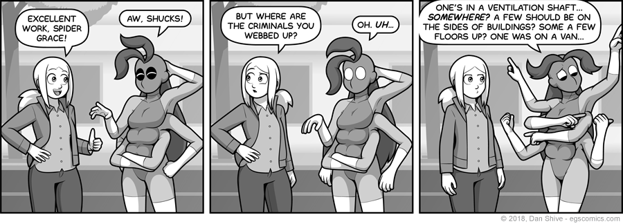 I actually have a logical explanation for Grace's anatomy in this comic, given that she has six arms, but it doesn't hold up to scrutiny.