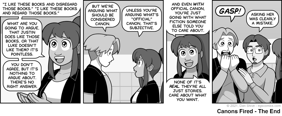 Except now I feel determined to reference it in the main comic at some point. The thought consumes me. It is now my goal. My only goal. I have but one path in life now, and that path is to make certain that, at some point, somehow, and for some reason, THIS STORYLINE IS REFERENCED IN OFFICIAL EGS CANON!