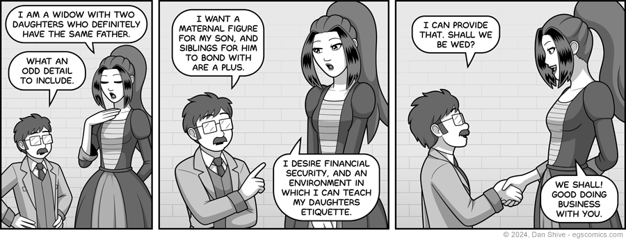 At a minimum, their marriage is being handled this way because I wanted the stepmother to be Bishop, and I'm pretty sure either of these two falling in love with the other would be a reality-destroying event.
