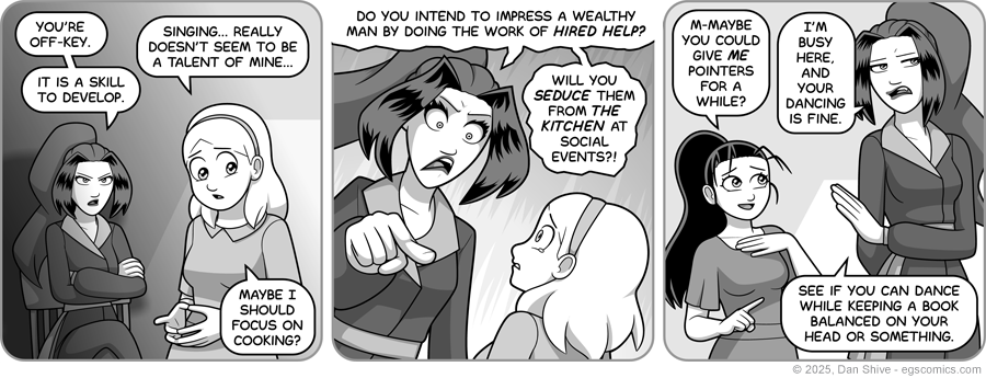 Another part of my brain: "YOU FOOL! COOKING IS FOR THE HELP! And how would she show it off if the plan is to attend social gatherings?! Part of the entire goal for Bishop is so her daughters don't HAVE to cook for themselves! Think about it for more than two seconds, why don't you!"
