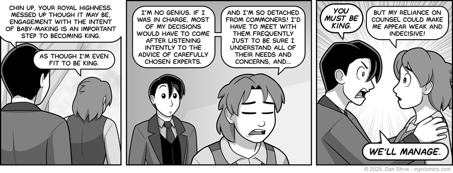 Granted, there are more qualities needed of a good leader than "will actually listen to experts and do their best to understand the needs and desires of those they lead", but royal assistant Raven here will take what he can get and help however he can, darn it.