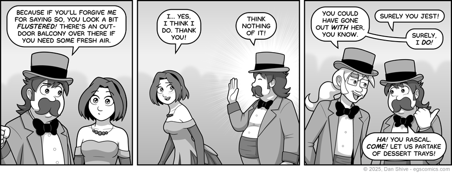 "There are other things I might have pointed out, but I daresay, the PACING, my dear! I've only time to present the option you will actually take! My word, I do go on. Off you go, then!"