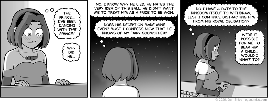 For the sake of brevity, I didn't include another reason for Prince Elliot hiding his identity: He wanted Cinderella-Tedd to feel she could speak freely with him. Even if it wasn't for brevity, it could feel a bit odd to bring up now. Very few characters have shown Prince Elliot much deference.