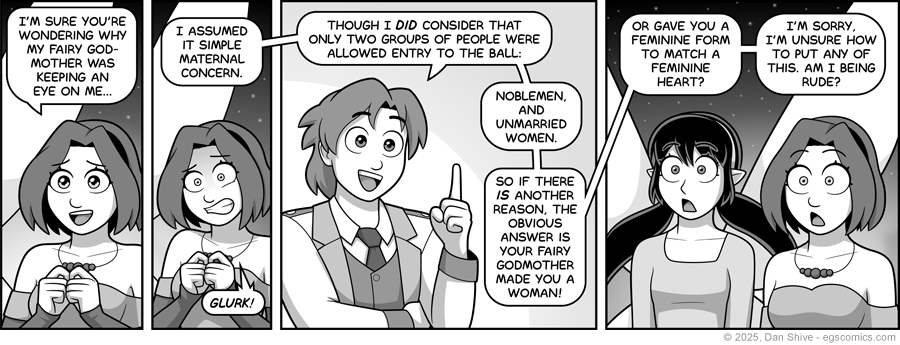 1. Prince Elliot requires less editing of how I naturally phrase things. For example, I probably would have modified panel two in some way for regular Elliot. Granted, given the space I gave myself, maybe not? I would have felt tempted, at the very least. With Prince Elliot? It's fine. Move on.