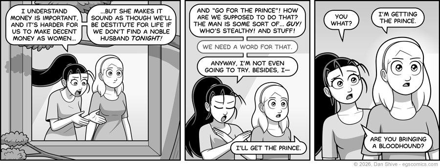 Ashley originally compared Prince Elliot to a ninja, but ninjas probably aren't common knowledge whenever or wherever this is. Granted, this is my story, and I could claim they were common knowledge, but why do that when Ashley can awkwardly struggle to think of what to refer to Elliot as?