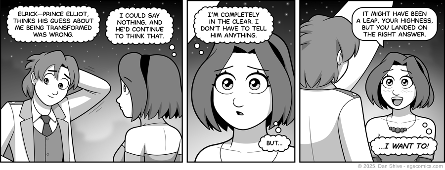I wanted Cinderella Tedd to choose to tell Prince Elliot the truth, but there was an issue. I didn’t think it was in-character for Cinderella to do that when suddenly faced with the imposing reality that Elrick was actually Prince Elliot, and next in line to be king. The power imbalance was far too great for her to just shrug it off.