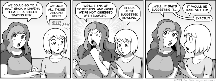 I also didn't want to list anything that sounded better than bowling in this comic, so I looked up popular dating options from the 1950's.