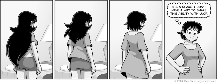 Which I am very thankful for, because it's why I had something for Rhoda to do that segues into what she thinks about next instead of just jumping right to it from Lucy's grumpy face in the last comic.