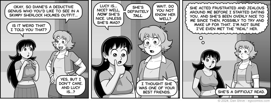 C - "Well, I mean... You think I'M tall, so... It tells me she's at least me-height?"