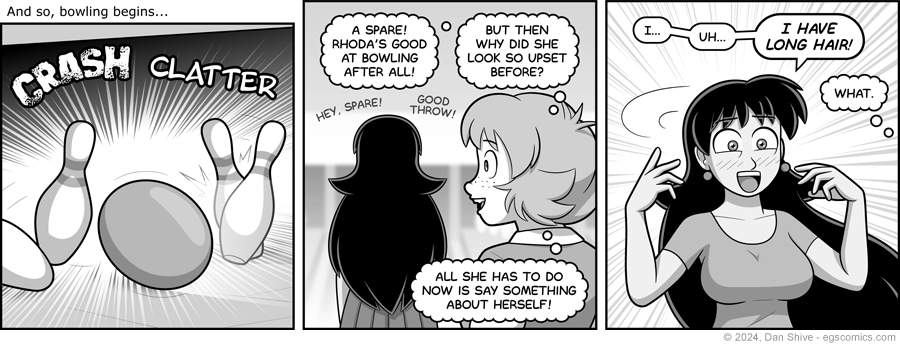 I actually had considered "Rhoda is simply bad at bowling" being the case, but I didn't like that as much as whatever this is.