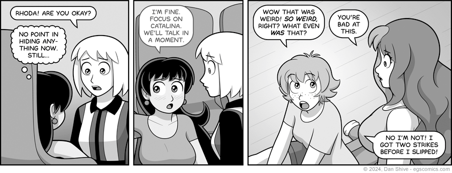 All of the cheating is happening in panel three to show some of Lucy's face and have her positioned where I needed in the panel, and it was 100% the right call.