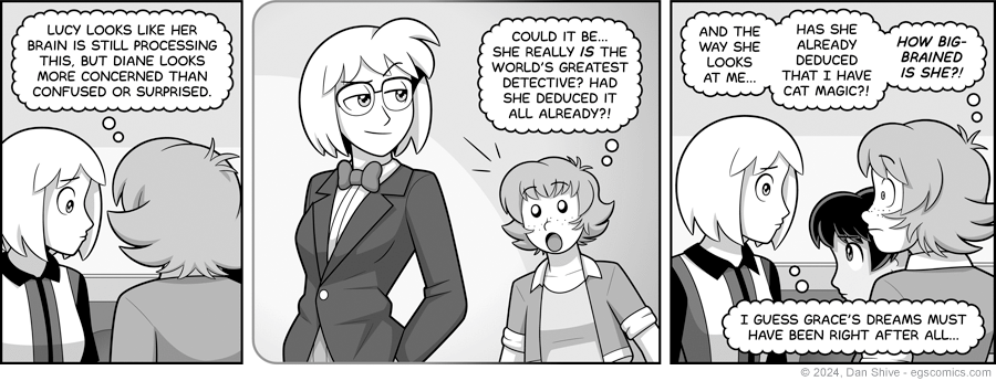 I originally figured I'd draw Diane dressed up like classic Sherlock Holmes (the most iconic version of him, anyway), but I wasn't really excited about it. I was just going with him as a visually recognizable detective.
