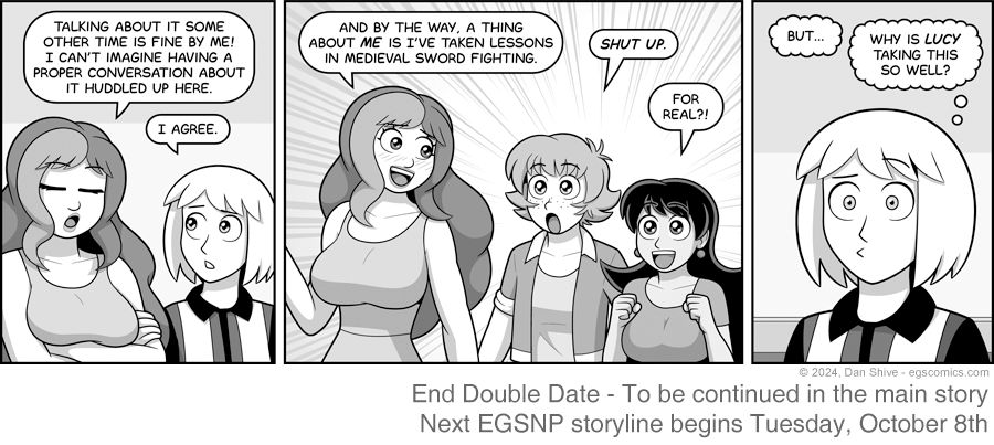 And thank all of you for reading this storyline, and EGS in general! As mentioned previously, when EGSNP returns, the storyline will be something silly and short. I want it short enough that the whole dang thing can be written in advance, and I can work on writing the storyline AFTER it while it's being posted.