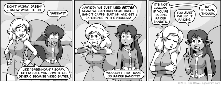 At the same time, you've got video game feedback telling you they're murderous raiders and such in advance. Looked at from another perspective, running into a camp or settlement and attacking complete strangers for sweet loot and XP is kinda sorta, y'know... Raiding.