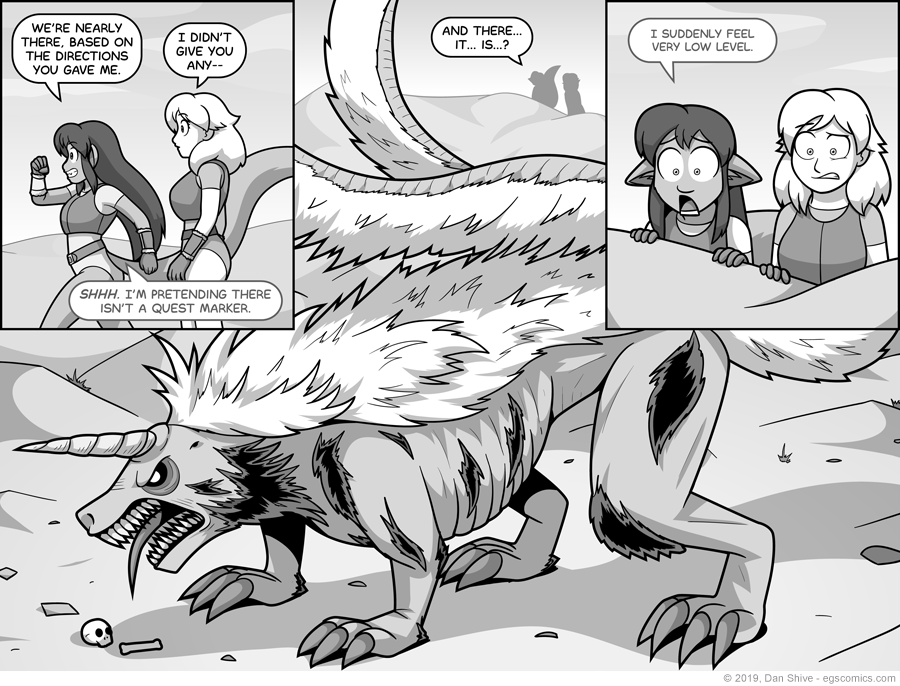 After responses to the previous comic, I feel I should clarify that I've barely played any Morrowind, and very little Oblivion (though more than Morrowind), the third and fourth Elder Scrolls games. I feel this, because apparently the level scaling worked less well back in those games? I can't speak first hand to it, but it certainly sounds like there were problems.