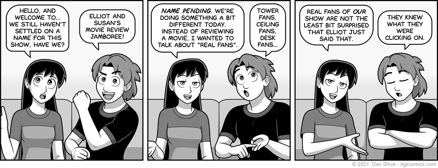 An episode of Susan and Elliot's show has always been an option for EGSNP, but figuring out what the heck to do with it was tricky. This was mostly because it's a movie review show.