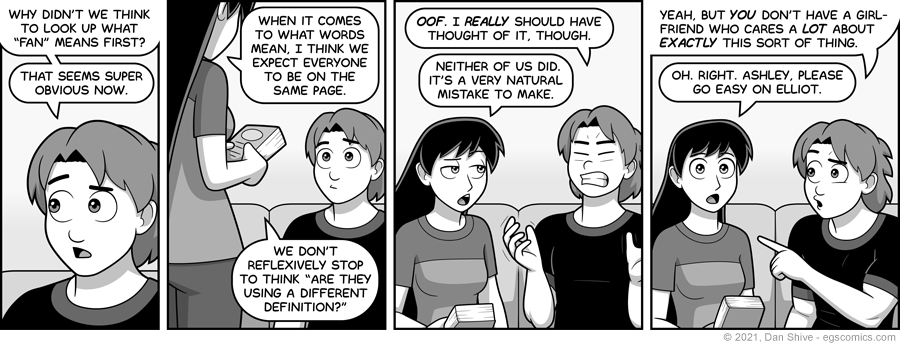 I decided I wanted Susan to grab a physical dictionary from the bookcase that is now canonically on that side of the room. This is a bit of a personal reflection of myself. In spite of generally preferring digital books, I prefer my reference material to be physical. In real life, I recently ordered a big hardcover dictionary because of this.