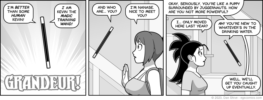 The views of Kevin regarding the quality of human Kevins relative to magic training wands made Kevins do not represent the writer of this comic or any of their shadow corporate overlords of questionable humanity.
