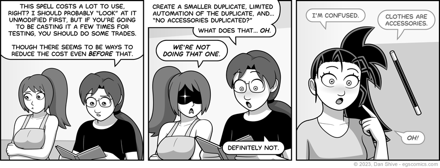 For the record, I did not work backwards from that last option! I was legitimately brainstorming ways to make the spell less costly to cast before getting "trades" involved!
