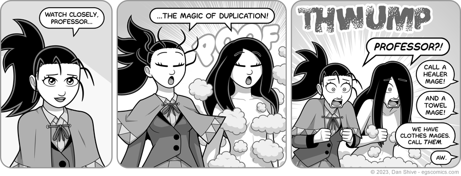 EDIT: The comic originally said "white mage" instead of "healer mage." I thought it was pretty common to refer to magic healers as white mages, but responses I got quickly suggested referencing that was needlessly confusing. Below is what I wrote before the edit (it was not reasonably common knowledge):