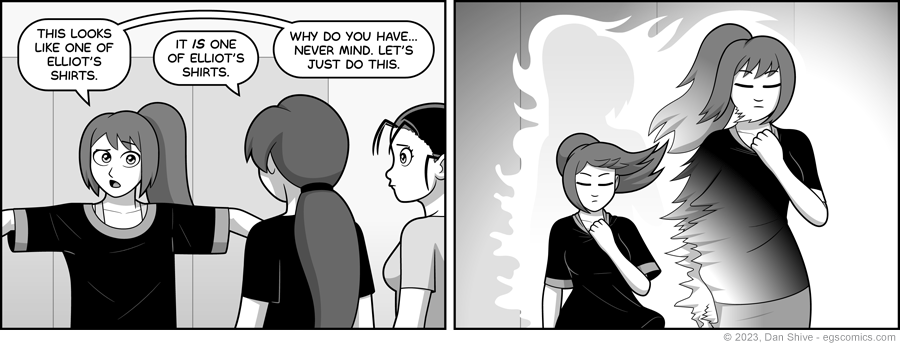 Also, why wouldn't people have spare clothes in Tedd's basement? All sorts of nonsense could happen down there. Be prepared, darn it.