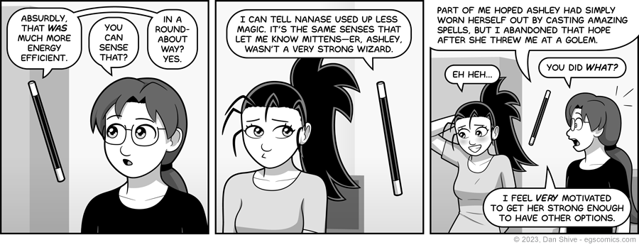 For example, if Nanase tapped into ambient magic energy while casting the spell, then the before and after difference would not accurately indicate how much magic was used.