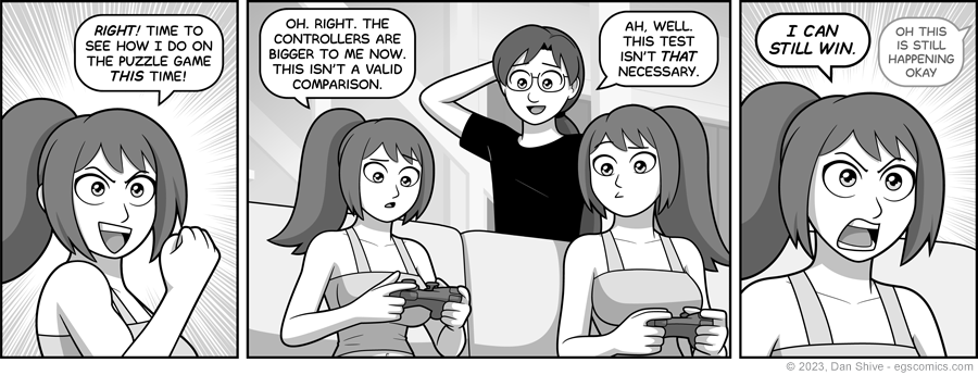 I mean, you're going to do terribly. You don't just get handed a controller that's effectively twice as big as what you're used to and still play well. That's not how muscle memory works.