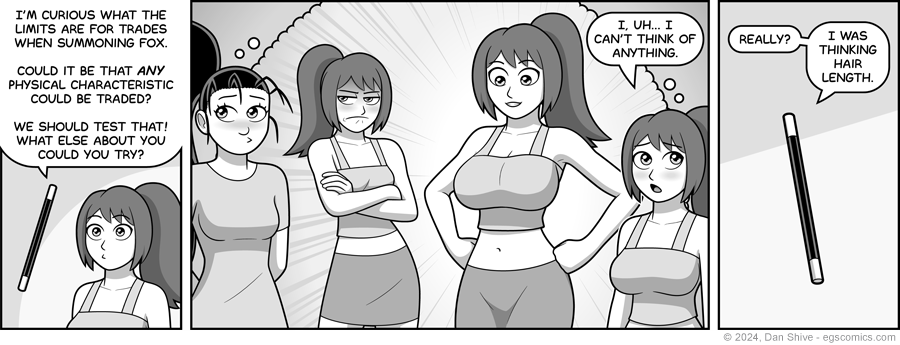 The fact that drawing a floating wand is faster than drawing a Tedd, and the fact that I was unexpectedly busy with something non-comic related, had nothing to do with this decision.