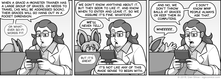 I hadn't planned on establishing an equivalent for Grace-A-Monsters, but then I got to the comic I had intended for today, and the comic to follow it. The lack of "storage" for Gracemander was a problem for the staging and timing of those comics, and I (eventually) realized I had to establish an explanation before those comics (hence how this wound up late in spite of George appropriate copy/paste action).