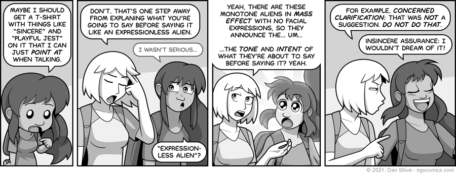 "Hm... I've referenced that people sometimes can't tell when Grace is joking several times now, haven't I? And I ALSO established that Diane is a Mass Effect fan..."