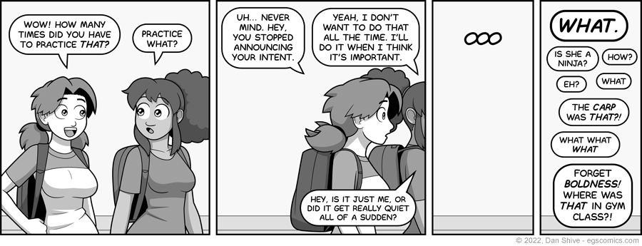 Also Also Also Me: Do I really have room for a crowd in four panels? I really want that silent beat before reactions to imply Grace and Ellen gaining some distance.