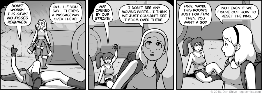 As this is a story in which nothing should be taken the least bit seriously, however, it can be assumed that Sarah could have safely had a go without risk of serious injury. That leaves the question of how they would go about resetting the pins, but as this takes inspiration from video games, the answer is doubtlessly to exit the room, and then reenter.