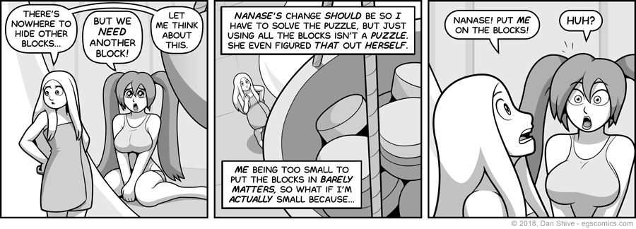 One might have noticed, but I've been varying Nanase and Sarah's text sizes. What exactly this means is open to interpretation, but my intent was to imply that Sarah had a slightly "shrunken" voice, likely speaking higher pitched than normal and such.
