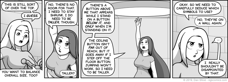 I don't consider panel one a complete disaster, and if should be apparent by panel two that she's referring to their figures being equalized. If I had infinite time, however, I would redo the panel with more of her shown to make that more immediately clear.