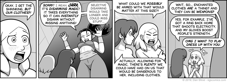It was a rather late realization on my part that clothing on its own could be dangerous if enchanted, but I'm so happy it DID occur to me in time, because I love that last panel.